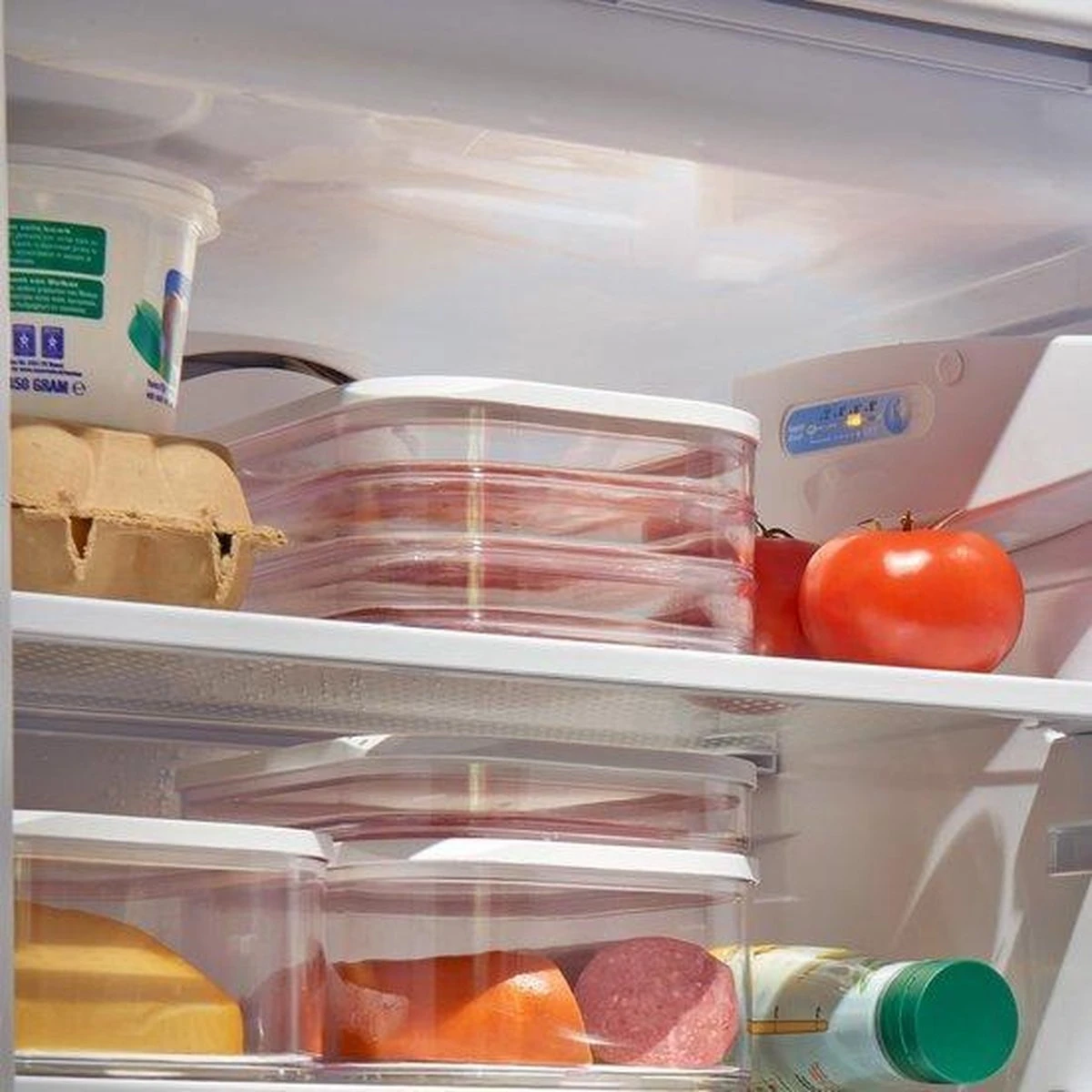 Mepal Modula 550/3. Soort: Doos, Vormfactor: Rechthoekig, Inhoud: 1,65 l. Breedte: 160 mm, Diepte: 224 mm, Hoogte: 86 mm. Aantal per verpakking: 1 stuk(s) De vleeswarendoos Modula van Mepal 550/3, voorzien van een doorzichtige deksel met witte ring. De rechthoekige Modula vleeswarendoos met afgeronde hoeken heeft een inhoud van 1650 ml en geeft direct zicht op inhoud, ook in de koelkast! De witte afdichtring zorgt voor een luchtdichte afsluiting, waardoor deze doos geschikt is voor het bewaren van diverse vleeswaren in 3 lagen. De Modula bewaar- en opbergdozen van Mepal zijn verkrijgbaar in verschillende maten en uitvoeringen, liggen goed in de hand en zijn makkelijk te openen. Bovendien zijn ze stapelbaar en vaatwasmachinebestendig. Hoe veeleisend u ook bent: Modula bewaardozen zijn erop berekend!