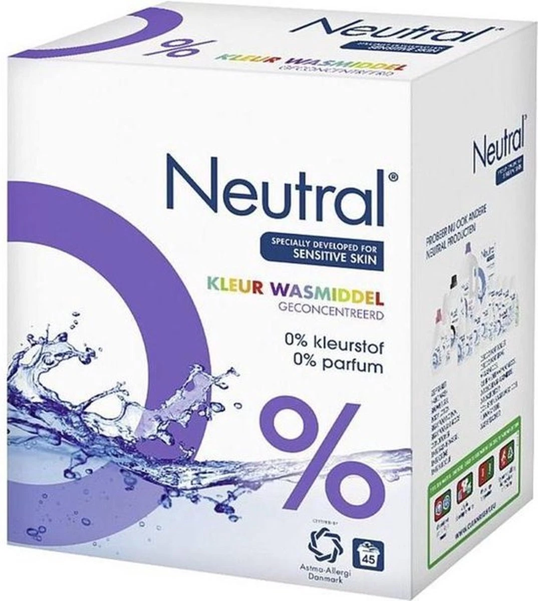 - Neutral Kleur wasmiddel is hypoallergeen en kleurstof- en parfumvrij