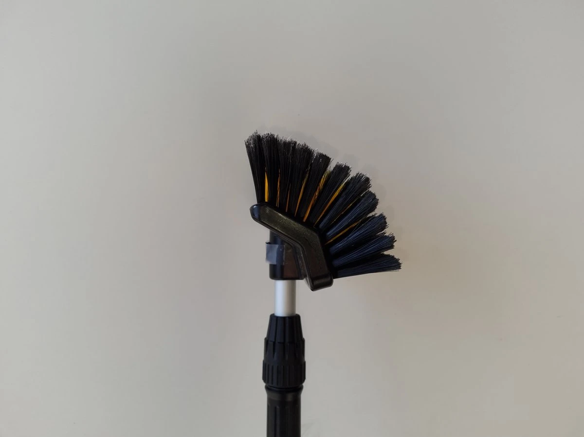 Autowasborstel of Zonnepaneelwasborstel met waterdoorvoer. De zachte, gepluimde PBT vezel van 0,25mm dik en 55mm lang is uitstekend geschikt voor het wassen van auto’s, zonnepanelen en andere gevoelige, waterbestendige oppervlakken.
